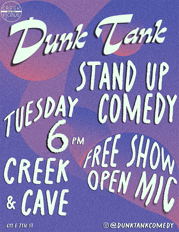 Stand-up comedy has a home in Austin. Clubs litter the city like, well, litter. But there is only one Creek and The Cave. Every week we mix things up with free shows, local legends, hometown heroes, and superstars of standup.